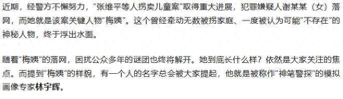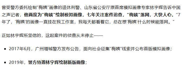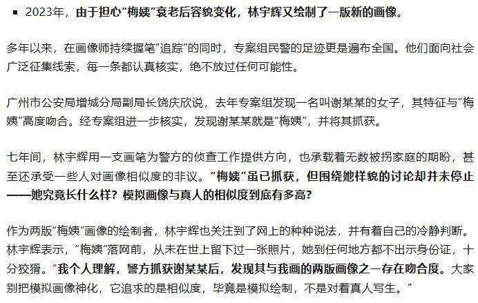△图左(2017年,广东警方发布的第一张“梅姨”画像),图右(2019年,林宇辉画的“梅姨”新版画像)。